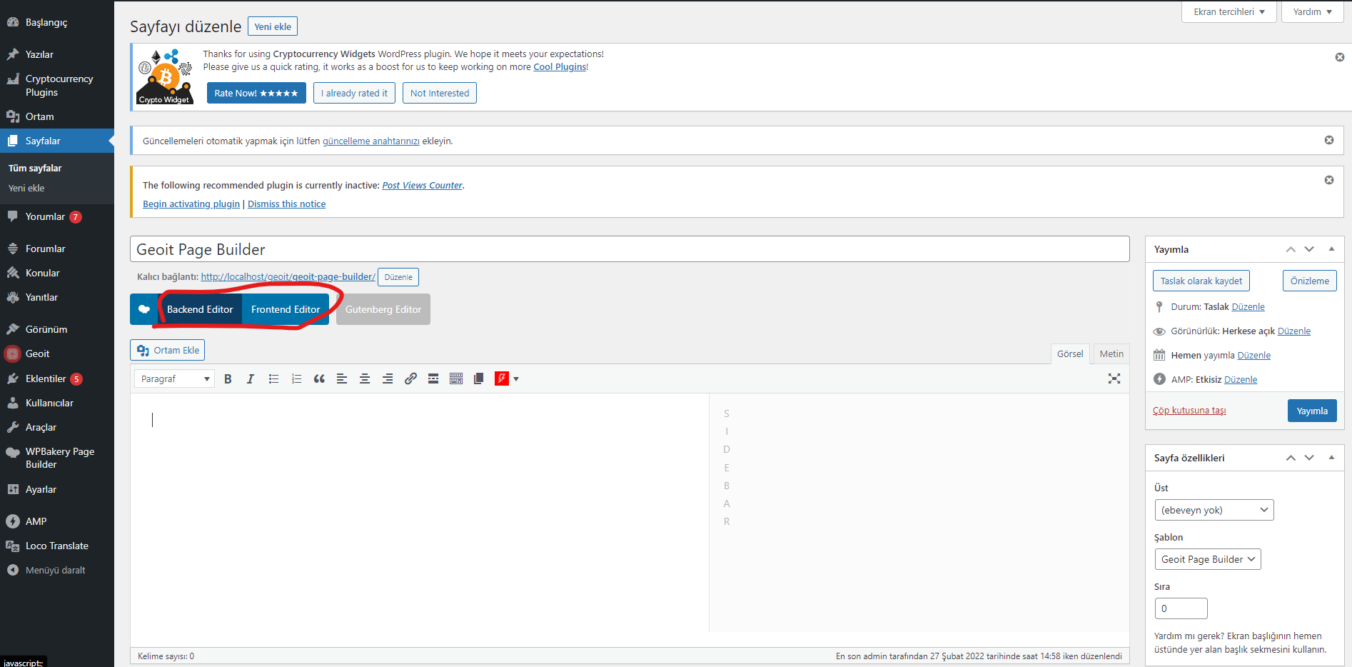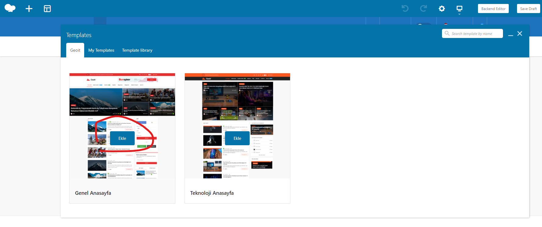 - Açılan sayfada başlığın altındaki Backend Editor veya Frontend Editor butonlarından birine tıklayın. Frontend Editor'ü tavsiye ederiz.
